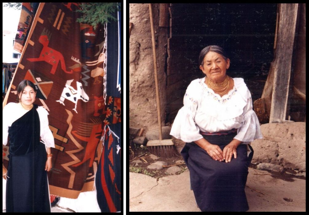 Two women in Otavalo wearing the traditional “anaku”