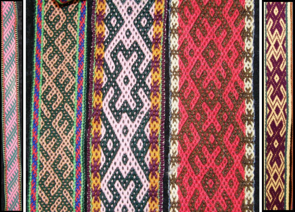 Russian Old Believer belts woven in supplementary warp and complementary warp techniques.