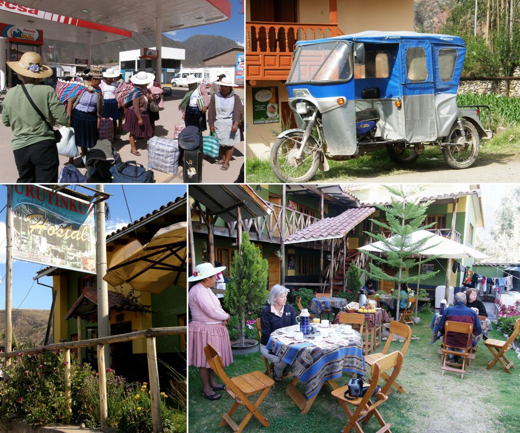 So when we got to Urubamba and made the mistake of getting off the bus too early, the ladies just took it in their stride, wrapped their luggage in their carrying cloths, hauled them onto their backs and took off up the road while I struggled along with bags in hand and dangling off my shoulder. Below you can see us lost at the gas station at the wrong end of town.