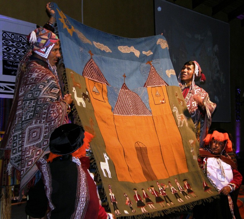 It all started with a ceremonial offering to Pachamama performed by an Andean priest accompanied by the sounds of the pututus, (conch shells), which were also blown to announce the start and finish of each guest speaker’s presentation. Everything was translated into three languages – Quechua, Spanish and English and the Quechua translator with his strong, clear dramatic tone of voice was a joy to hear.