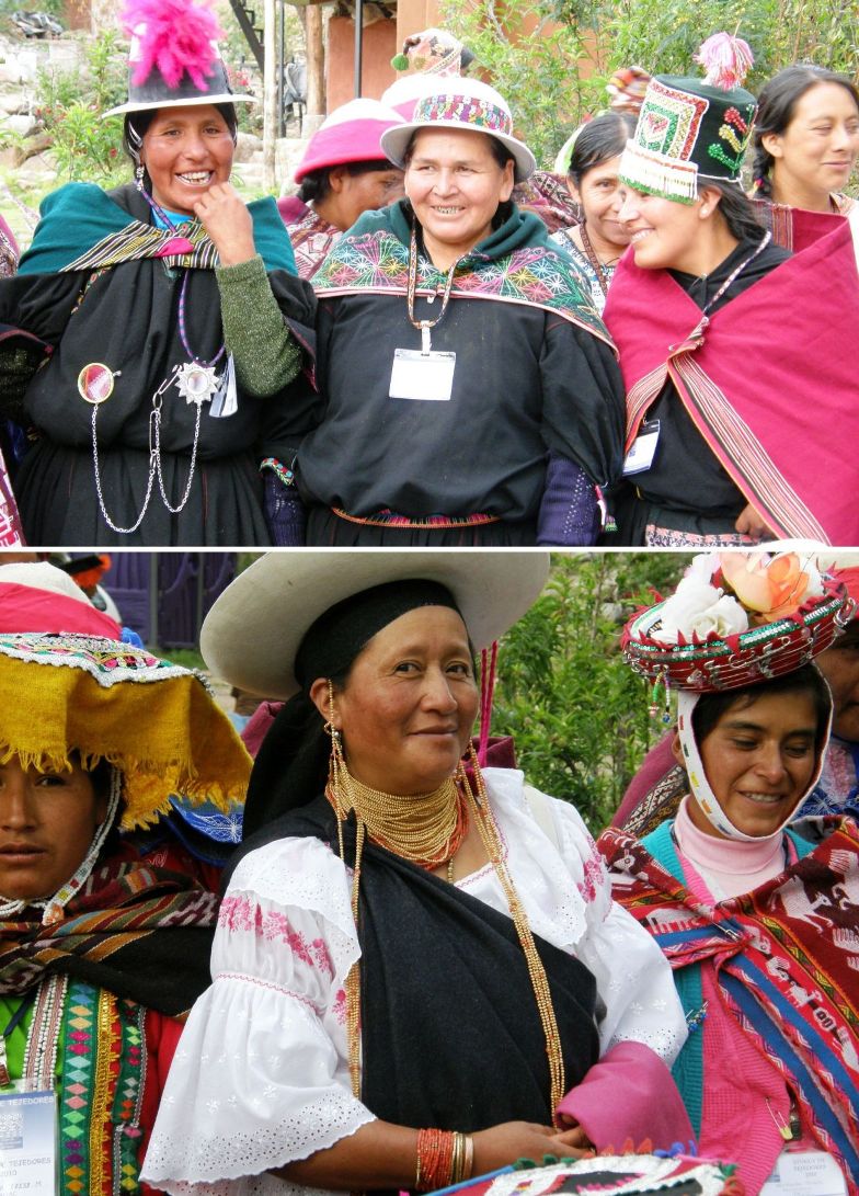 Watching the watchers...while the weavers gathered around to watch the demonstrations, I stood back and admired their gorgeous outfits. On the left is a group of ladies from Sallac community and on the right from Chahuaytire.