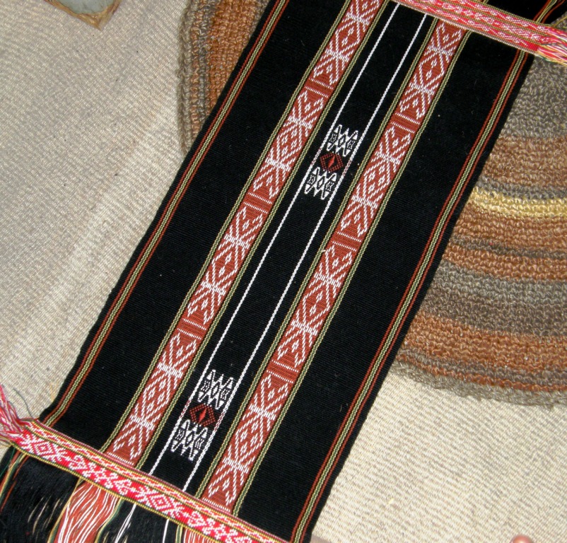 You may remember in last week’s post I showed you pictures of Li weavers from Hainan Island and their looms. I have since found someone else who owns one of these looms who also has the backstrap. I don’t remember seeing one at Pam Najdowski’s stand. Susan Stem of Tribal Trappings has this photo of a Li weaver’s backstrap…