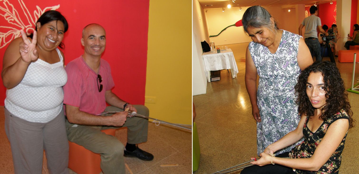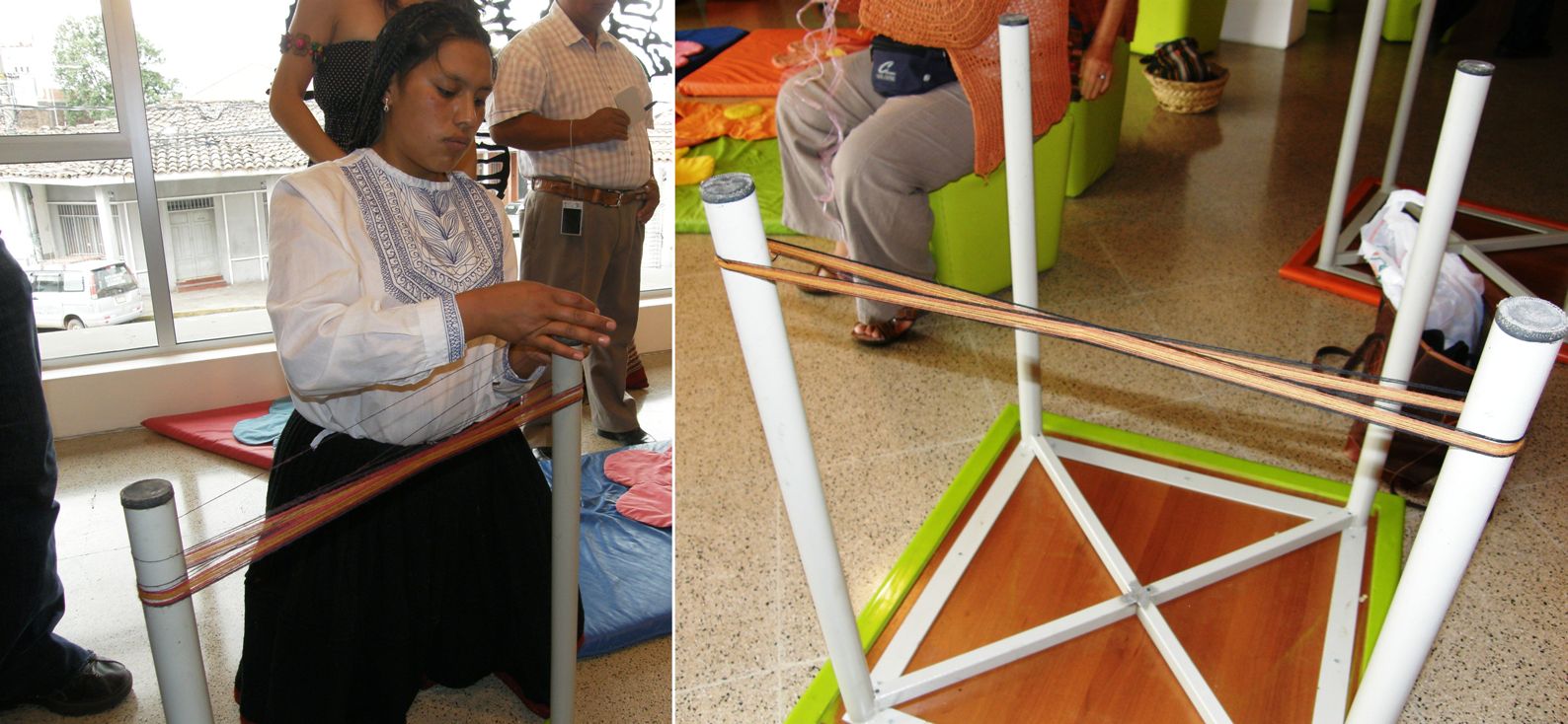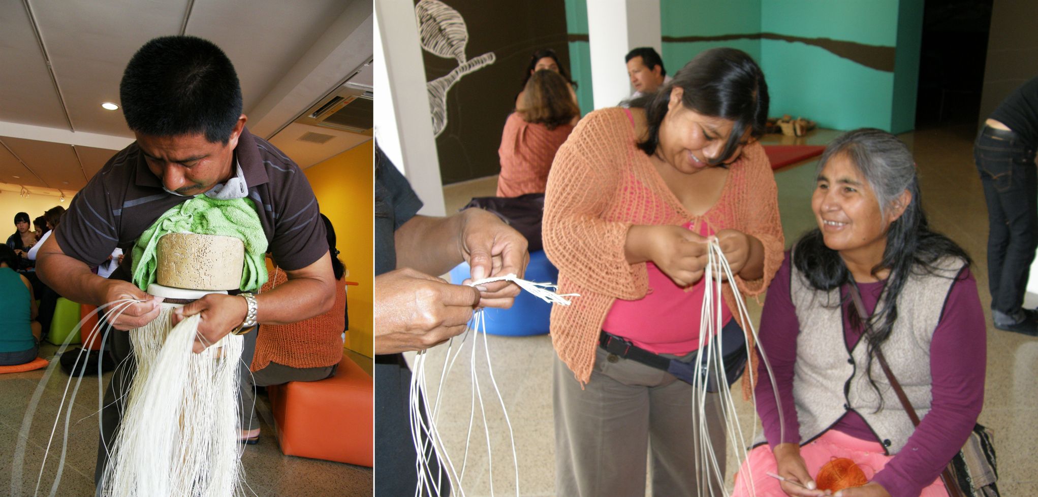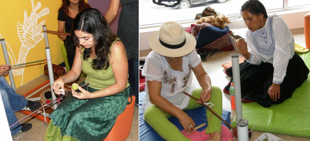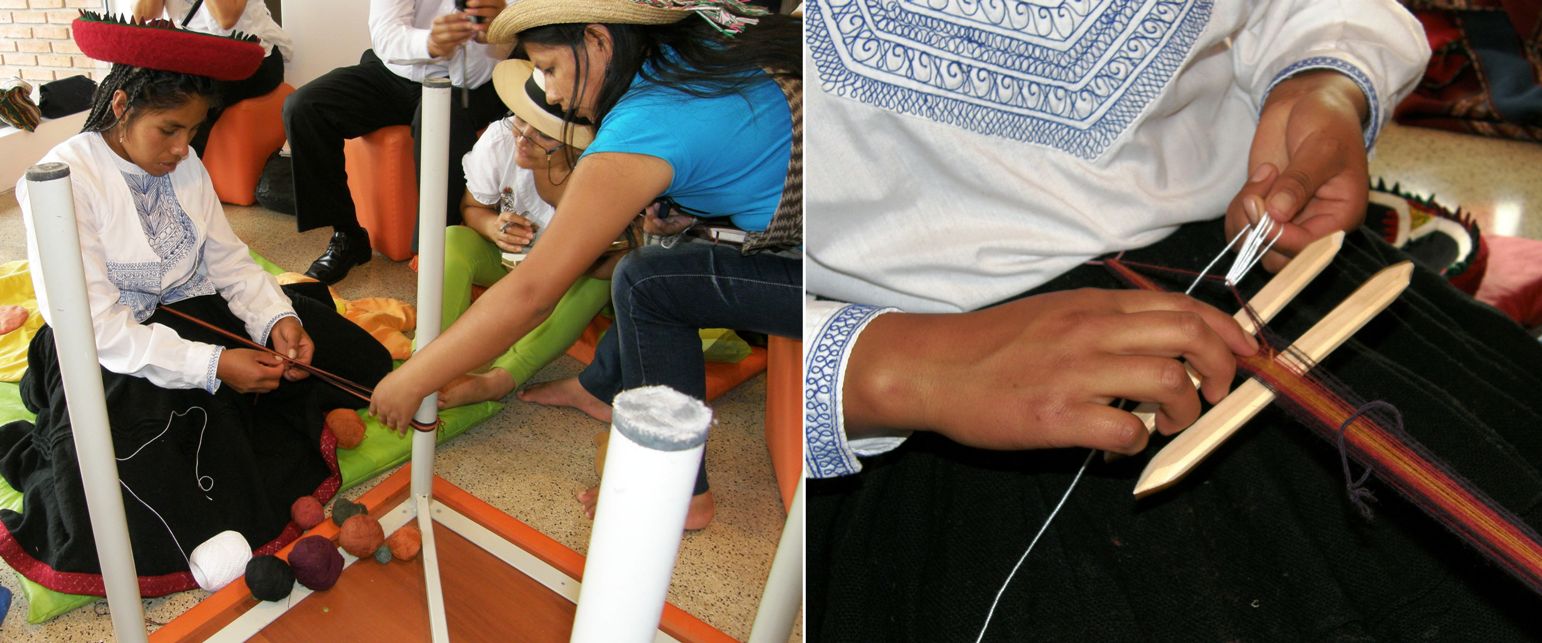 On the other side of the room, Aymara weavers Celinda and daughter Isobel were teaching backstrap weaving to another group.