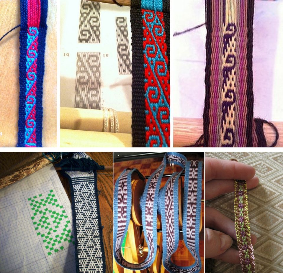 At the top, Jennifer has been producing swirls and curls of traditional, as well as her own, design. Linda wove a traditional design of coastal Ecuador into a bookmark using simple warp floats. The chart is here. Both popsicletote and Tracy have been exploring the tanka choro motif of Chinchero Peru. And I know that there is a lot of spinning going on there behind the scenes too.