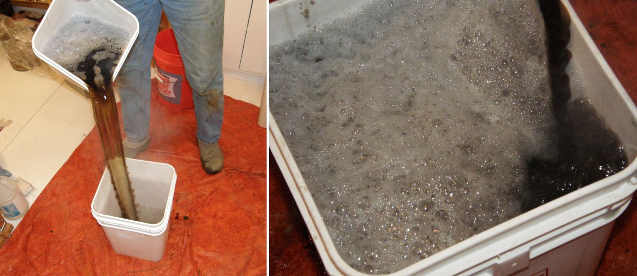 Then Pam poured the liquid from container to container to introduce oxygen. A heavy froth formed and increased in volume with each pouring.
