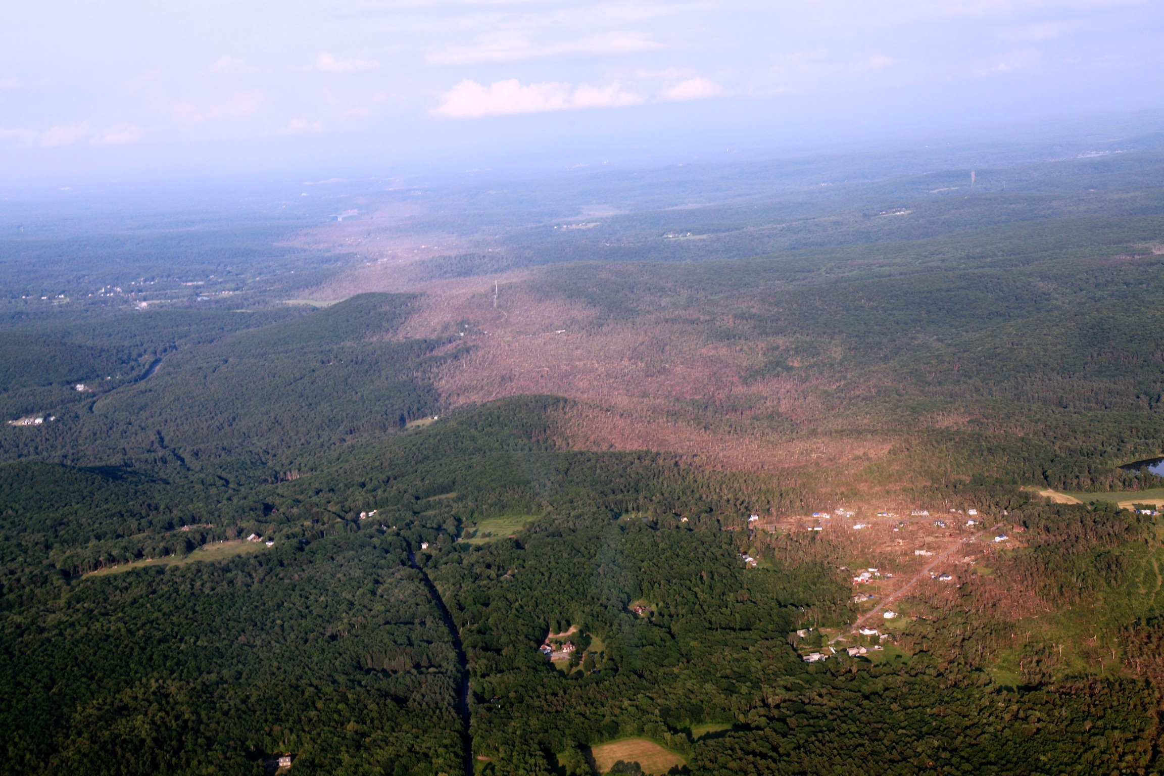 After leaving a cold, drizzly and dreary Massachusetts last May, a tornado swept through the area where my weaving friend Pam has her studio Firewatch Weavers in Brimfield. Pam’s husband Jim Engberg, who pilots his own plane, took this aerial shot of the clear path of destruction. I am happy to say that I missed this by a couple of weeks.