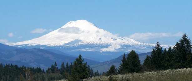 Mt Hood appeared on the horizon with a variety of pretty foregrounds. It looked particularly lovely with the blossoming fruit trees in Hood River.