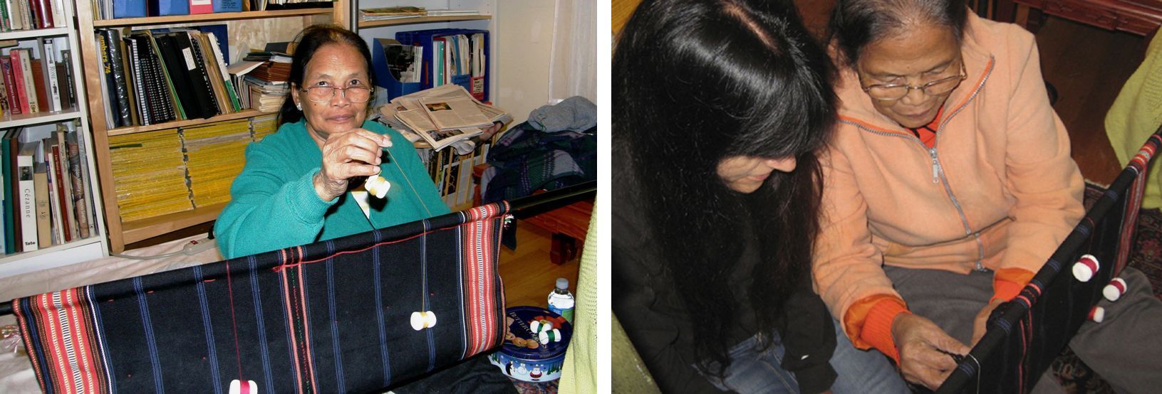 From books and images on the internet to suddenly finding myself seated next to Ngach, watching her bobbins twirl as she gracefully applied weft twined patterns to her large blanket piece off the loom, listening to her stories about her desire and determination as a young girl to learn to make the traditional kteh patterns. It was a dream come true.