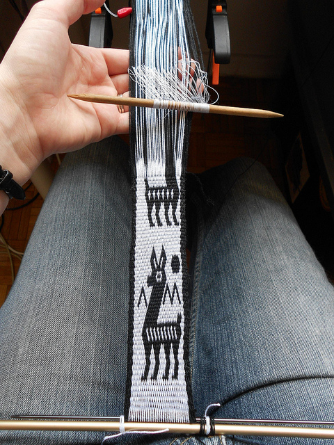 And Xav dove straight into double weave and the llama figures that I have charted here on the blog…her first ever backstrap woven band!