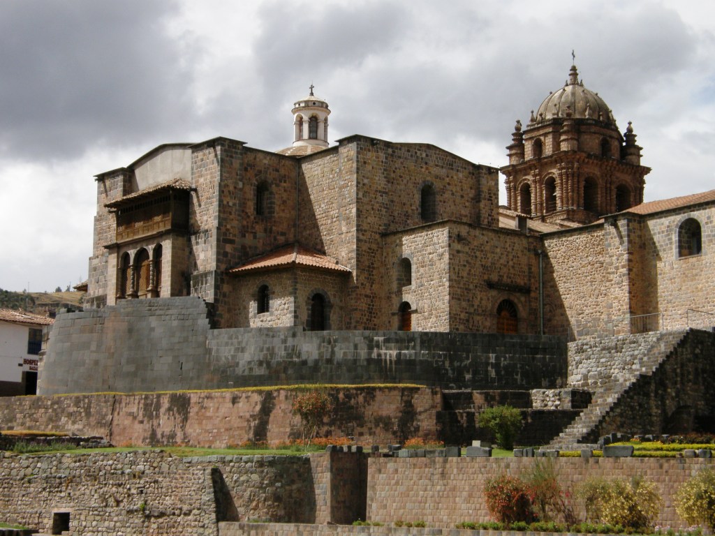 This is the church of Santo Domingo built by the Spanish colonists on top of the stonework foundations of the demolished Inca temple Qorikancha. The inca stonework has apparently survived earthquakes which the Spanish construction was not able to withstand.