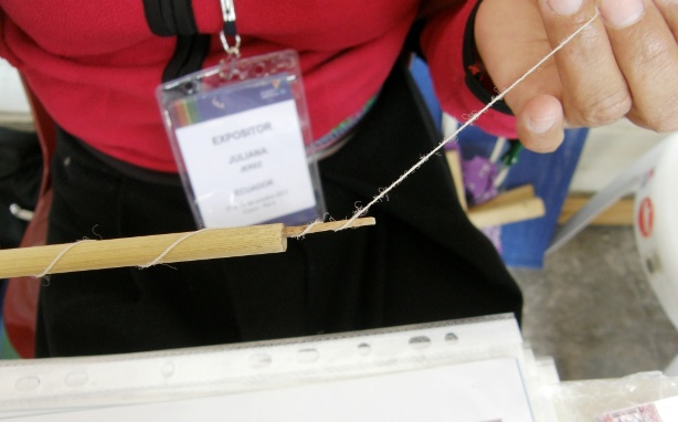 The traditional “sig sig” spindle of Salasaca, Ecuador made from pampas grass.