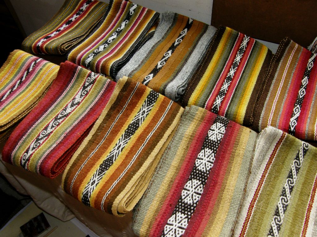 I like to feel the cloth. The yarn is the weavers’ own handspun, most often made with fleece from their own flocks. The colors are all natural and were created from cochineal and local plants.