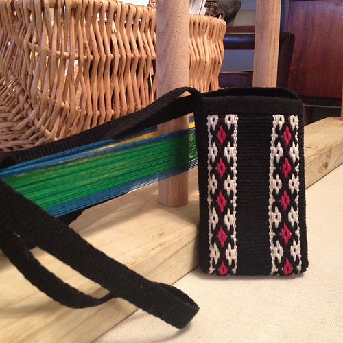 kim's bagKim finished her piece and sewed int a small bag for which she also wove a strap. Now she is on the lookout for a button to close it.