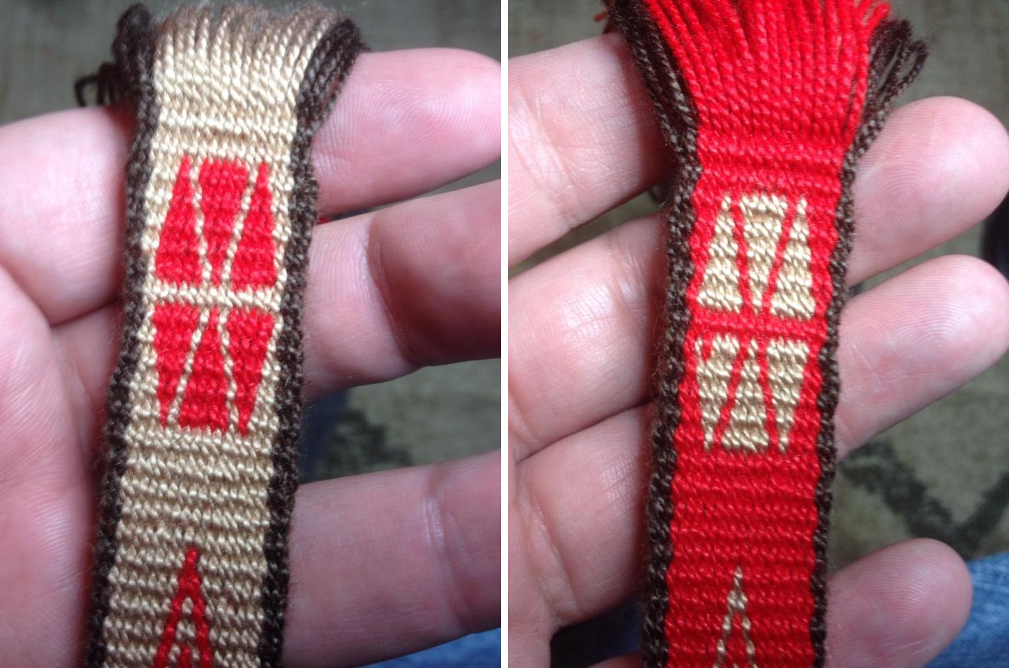The weavers used a complementary-warp structure to create the patterns on these bands.