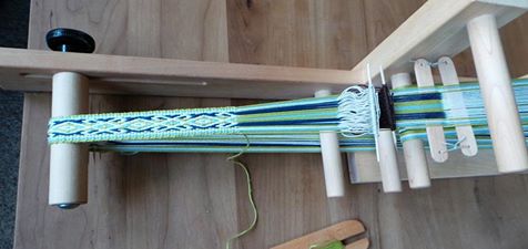 Annamieke’s inkle loom with Andean Pebble Weave.