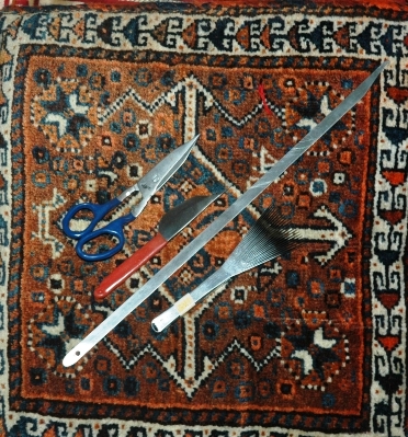 Back then, something a weaver had posted on the Weavolution website had resonated with me. An Australian gentleman, Hakim, was learning to make cut pile knotted rugs with an Iranian teacher in Australia. He said that when he is at home working on his practice piece, he can tell that the tension of the warp threads is correct if they make the same sound when he handles them as they do when he is working on his learning piece with his teacher in class.