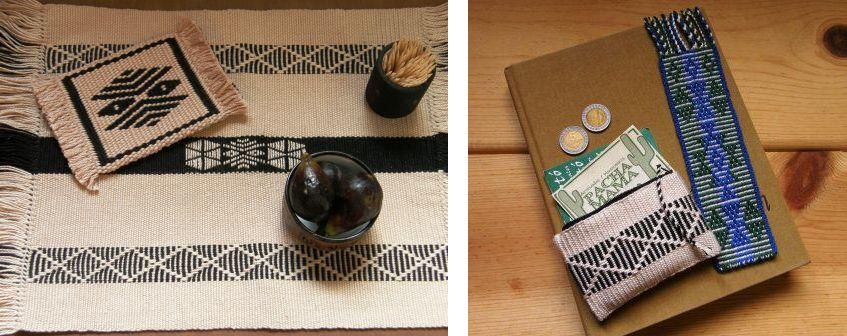 La técnica de “simple warp floats” es una de las técnicas de patrones más fáciles de ejecutar en tejidos de faz de urdimbre. Puede ser aplicada a piezas, ya sean grandes ó pequeñas… desde bandas para sombreros hasta individuales. Las patrones pueden cubrir toda la superficie tejida, por ejemplo, en un marcador de paginas o se usan para un pequeño acento en una pieza más grande, por ejemplo un tapete.