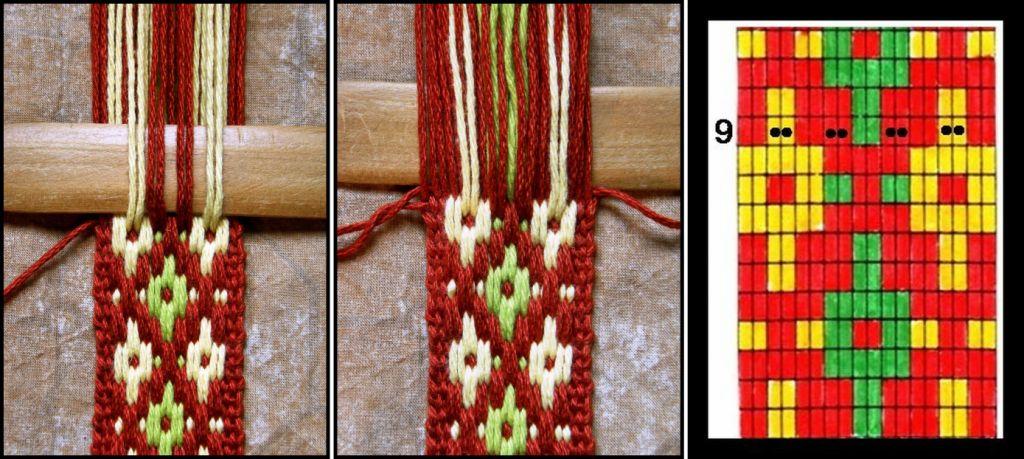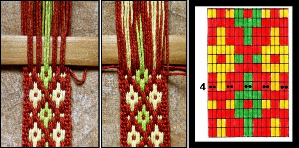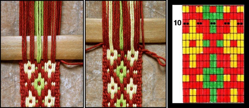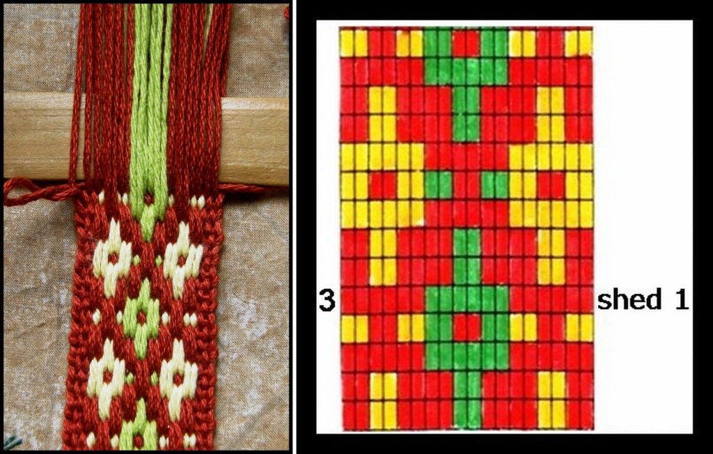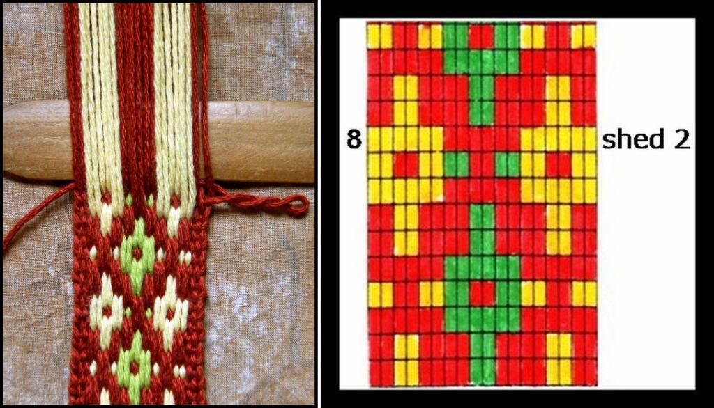 This is a tutorial for weaving designs using two colors of alternating simple warp floats. Here I will show you how to weave the border design from a yurt band which you can see below.