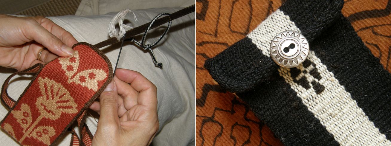 My Guarani friend edges the entire cell phone pouch with a tubular band rather than just the flap as I have done. Her band is used to decorate and strengthen the edges.